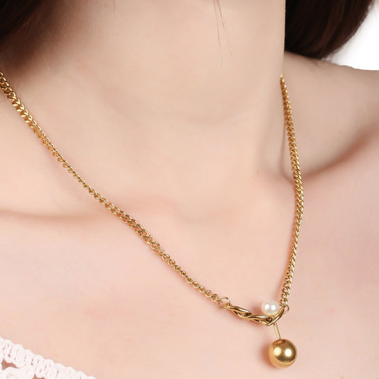Gold Ball And Pearl Pendant Necklace