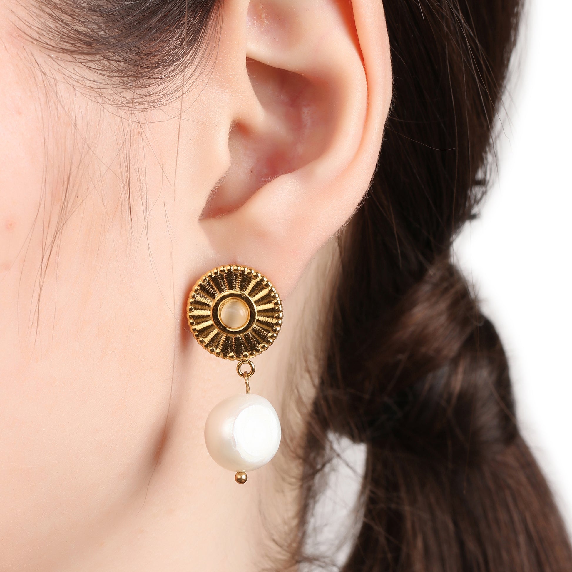 "Sun Pearl Drop Earring".